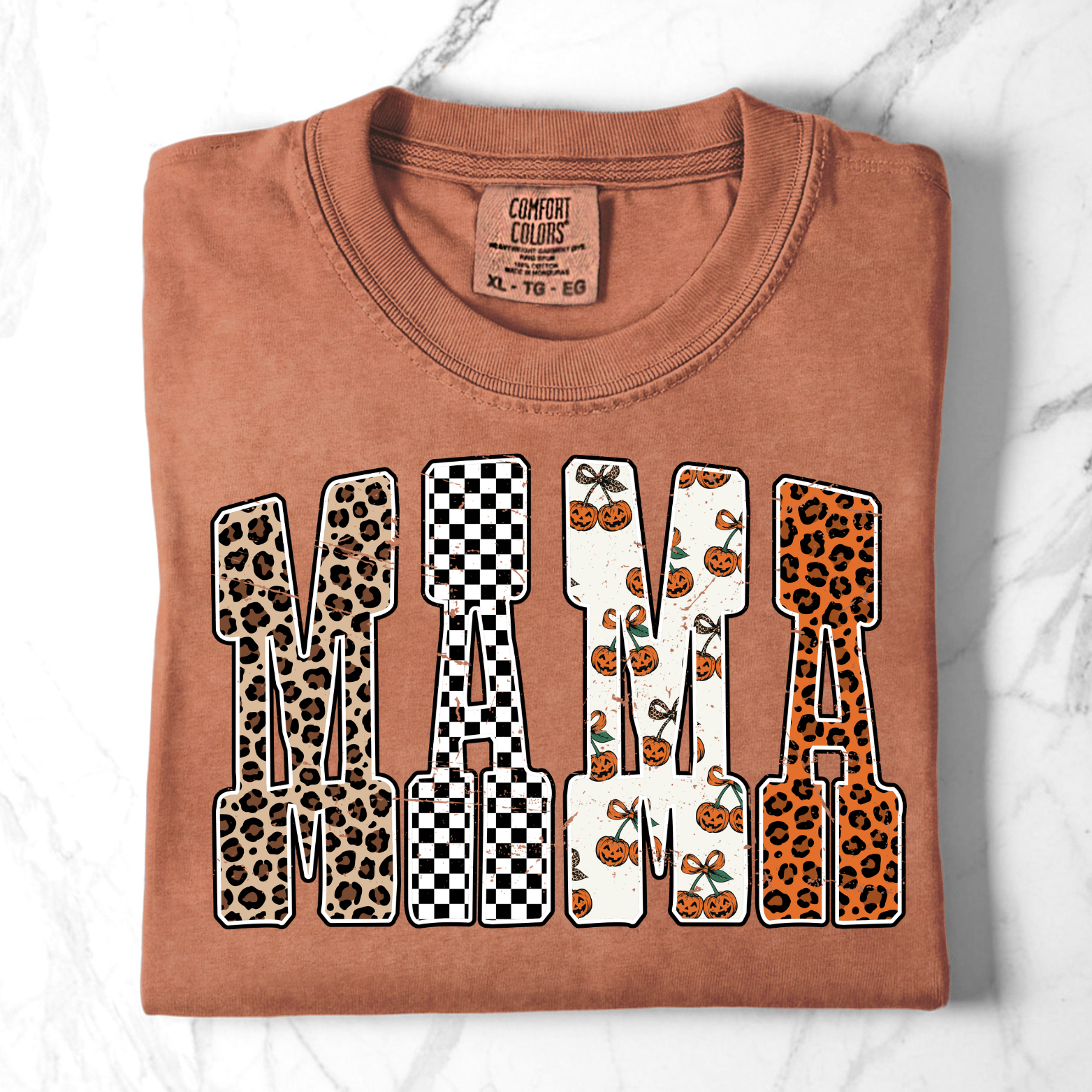 Celebrate Halloween in style with our "Halloween Mama" design, featuring adorable pumpkin cherries and a trendy cheetah print. This cute and festive piece perfectly blends spooky season charm with fashionable flair, making it a must-have for any Halloween-loving mom. Embrace the holiday spirit while standing out with a playful, eye-catching look that’s both fun and stylish.